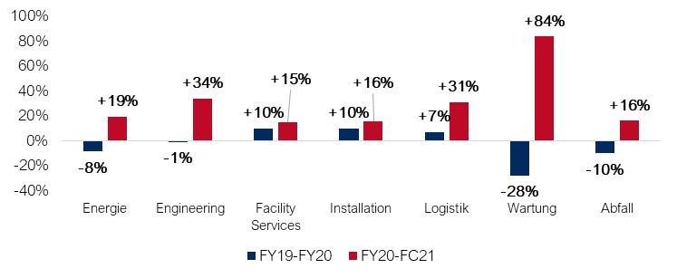 EBITDA Wachstum nach Sektoren 2019/20 & 2020/21 (Index +24,9%):
