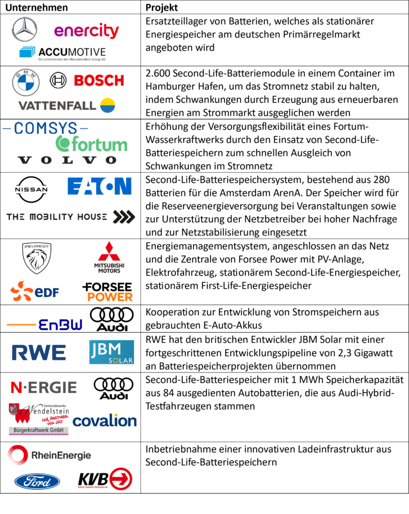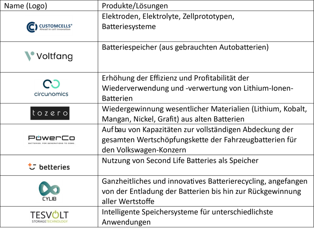 Als potenzielle Partner der Automobilindustrie kommen hier einerseits Energieversorger, andererseits Unternehmen, die sich entlang der Wertschöpfungskette der Batterien angesiedelt haben in Frage.