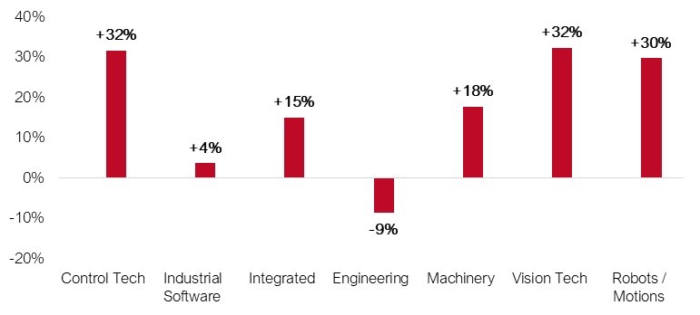 Der Investec Industrial Technology-Index verfolgt tagesaktuell die Entwicklungen in Sektoren wie z.B. Control Tech, Industrial Software, Integrated providers, Engineering, Machinery, Vision Tech & Robots/Motions.