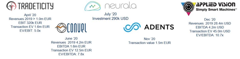 For sure, the external effects left their marks on the M&A market as well. Compared to 2019, in 2020 the number of deals with German participation didn’t decrease that dramatically, but momentum clearly slowed down in the second half of the year. However, from discussions we have had with business leaders, owners and financial investors we are aware of a remarkably high interest in strategic M&A topics, especially from a buy side perspective. The motivation behind this ranges from acquiring product and system competence to enhance component business and broaden the share of wallet, strengthen the competitive position in core application markets or acquire technology or software know how, e.g. to introduce vision operating systems to the market. These platforms allow to design and operate systems of sensors from various providers and processing algorithms thus allowing for best of breed system architectures.