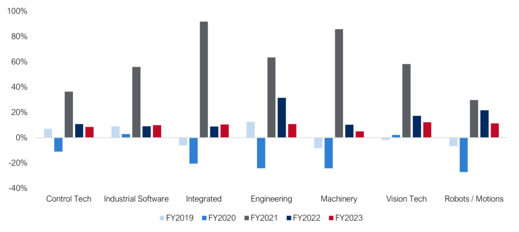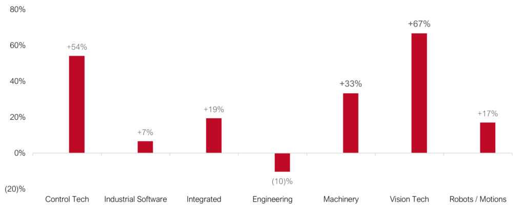 The Investec Industrial Technology index tracks daily developments in sectors such as Control Tech, Industrial Software, Integrated Providers, Engineering, Machinery, Vision Tech & Robots/Motions.
