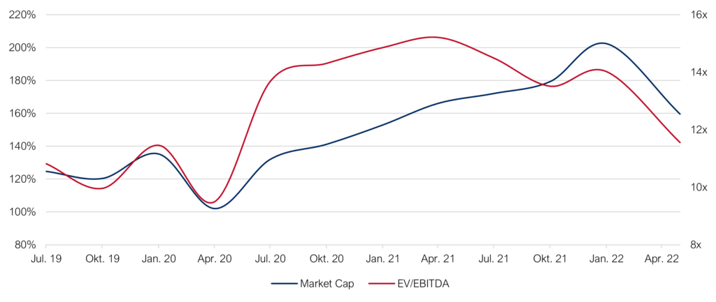 EBITDA-multiples by sub-sector: Sep. 2019 (Pre-Covid) – May 2022