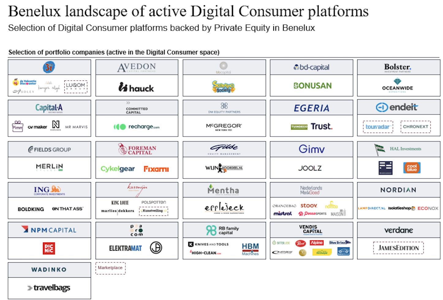 There are numerous private equity platforms in the market looking for acquisitions and further scaling. Below you will find an overview of a selection of the Benelux private equity platforms active in the Digital Consumer market.
