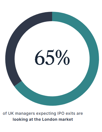 Some 65% of UK managers who expect to list a portfolio company in the next two years consider the UK a potential venue – although they will also look at other venues such as Amsterdam or New York.